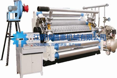 吸附式單面機采用高溫潤滑脂潤滑,方便可靠。 各導紙輥、予熱輥熱處理后,表面均經(jīng)精磨并鍍硬鉻處理。預熱輥、壓力輥、瓦楞輥均符合二類壓力容器國家標準,并經(jīng)專業(yè)機構(gòu)驗證。